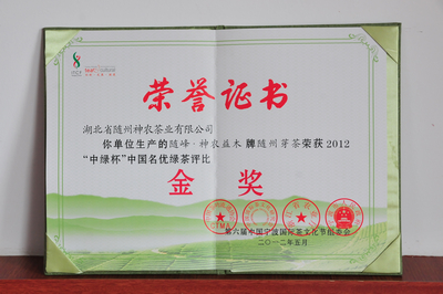 “隨峰、神農(nóng)益木牌隨州芽茶”榮獲2012 “中綠杯”中國(guó)名優(yōu)綠茶評(píng)比“金獎(jiǎng)”